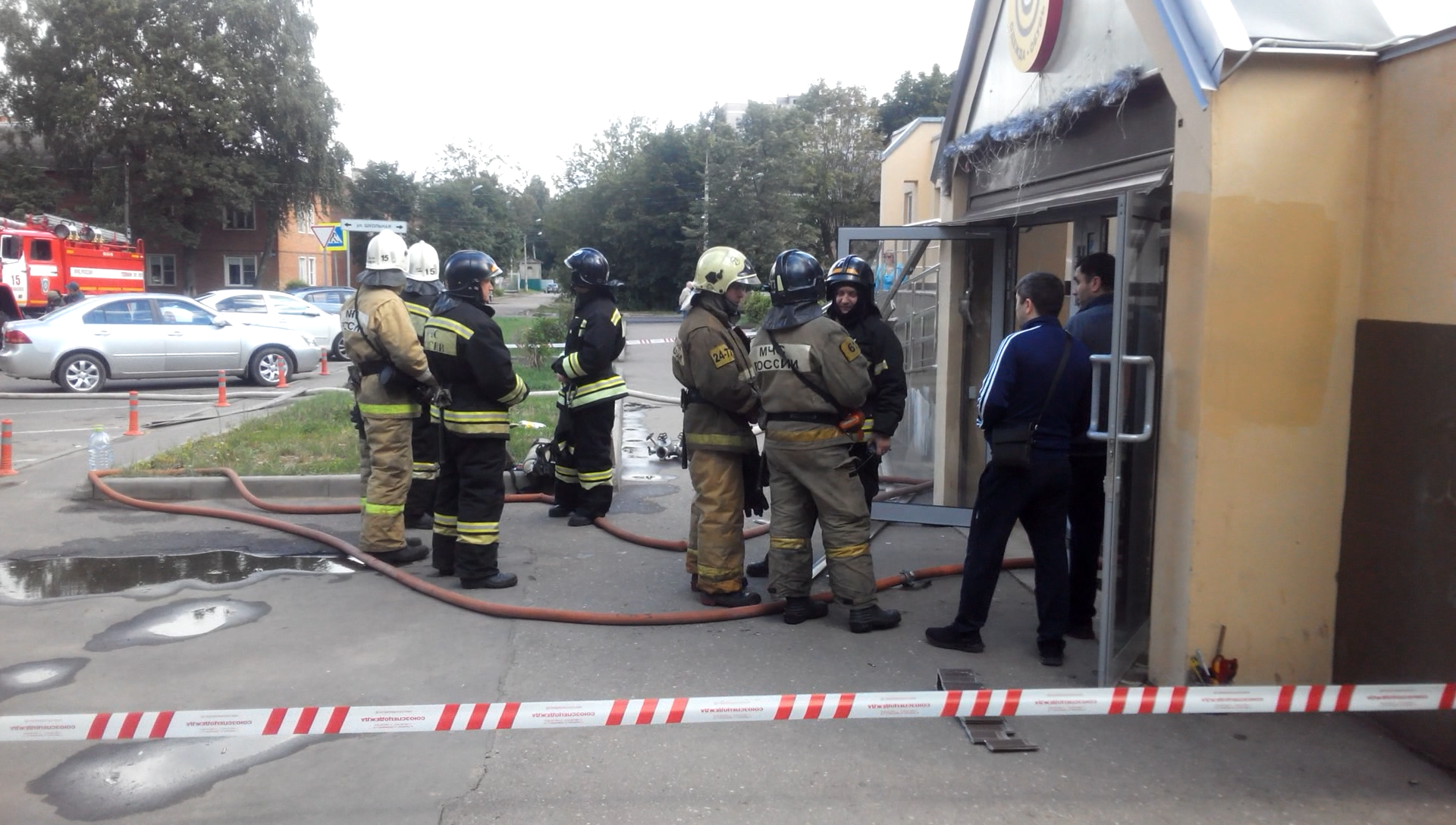 На момент прибытия пожарных расчетов дым валил из окон и дверей торговой точки, расположенной на первом этаже девятиэтажки.