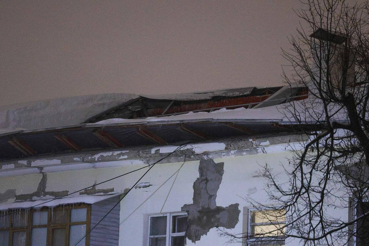 В Подольске на Пионерской, 23 произошло частичное обрушение кровли трёхэтажного многоквартирного дома