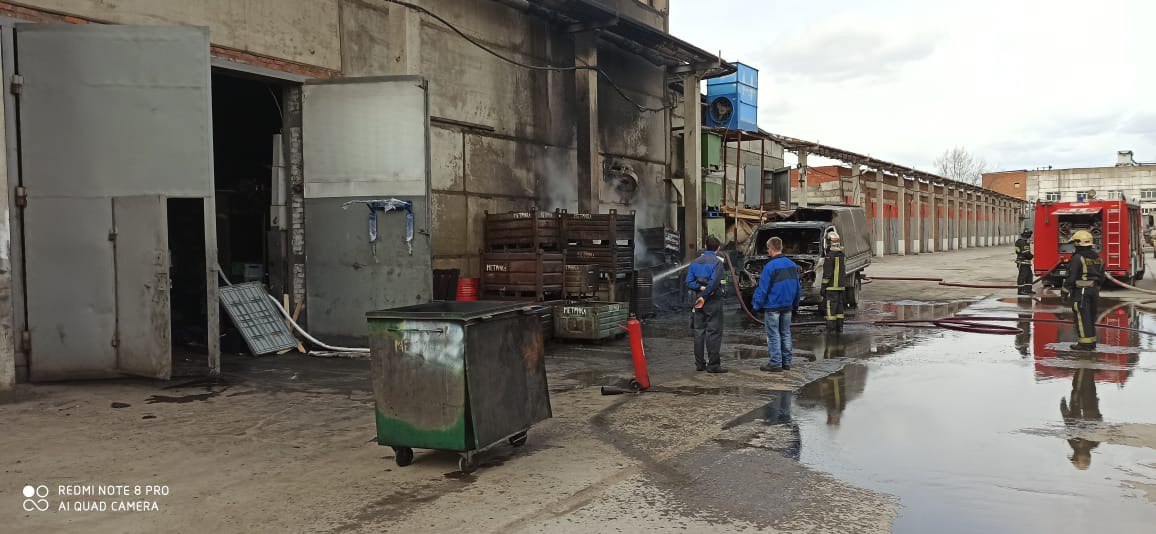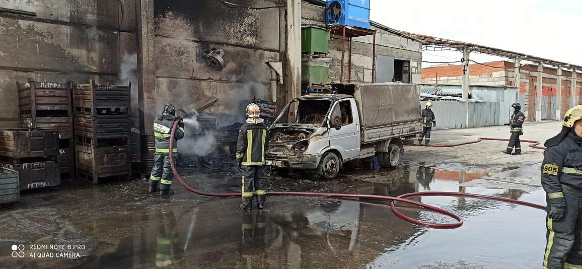 К приезду пожарных расчетов пламя охватило не только грузовую "Газель", но также тару и находившееся рядом оборудование.