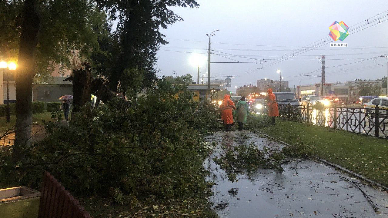 И такая картина по всему столичному региону. МЧС с самого утра предупреждало жителей Подмосковья о надвигающемся шторме. В итоге ближе к вечеру улицы города выглядели примерно так. Поваленные повсюду деревья, в некоторых районах повреждены электросети, в старых домах и постройках посрывало крыши. Для коммунальных служб вечер четверга оказался настоящим испытанием на прочность.