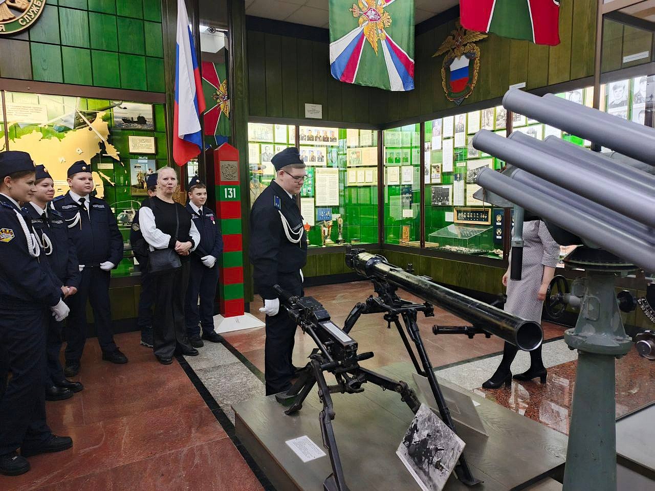 Увидеть своими глазами работу пограничной службы и понять, как сегодня охраняются рубежи Родины — такая уникальная возможность выпала воспитанникам кадетских классов Росгвардии школы №18 имени Подольских курсантов. Экскурсию организовали сотрудники Подольского отдела вневедомственной охраны. Экскурсовод музея увлёк юных гостей рассказом о нелегкой, но почетной доле защитников границ, сообщает