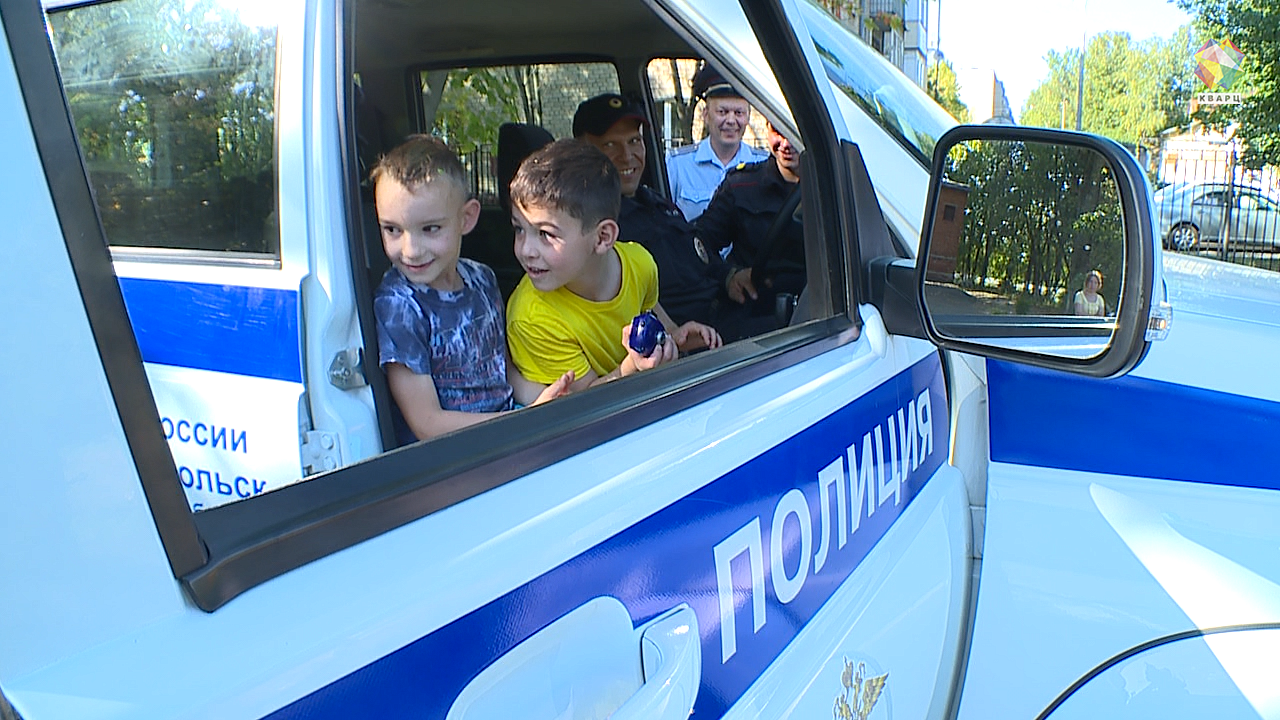 Полицейские разрешили мальчишкам посидеть в служебных машинах и даже включить звуковые сигналы.