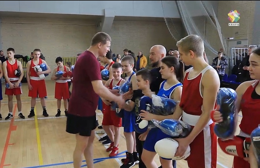 В гости прославленный боксёр приехал не с пустыми руками, спортинвентарь юным атлетам передал и Благотворительный фонд "Наследие"
