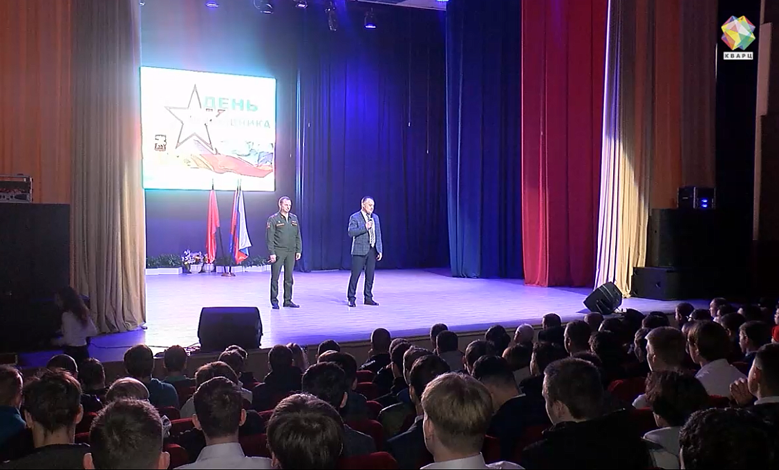 В первом ряду самые почётные гости - участник войны Николай Герасимов и те, кто в своё время защищал рубежи Родины. Среди них и Иван Мечишев - самый сильный человек не только нашего города, но и страны. Служил в 2006 году в дивизии Дзержинского, сегодня пришёл поддержать ребят.
