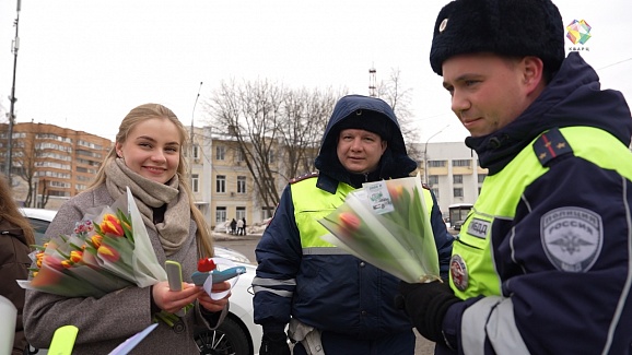В Подольске сотрудники ГАИ дарили женщинам за рулём тюльпаны и открытки