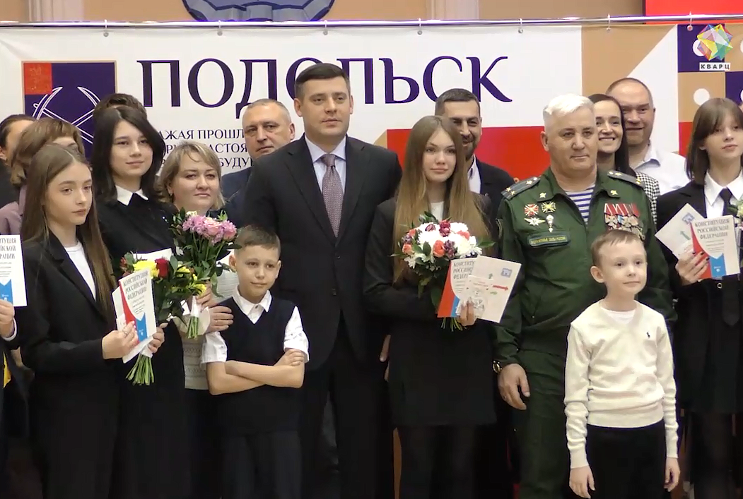 Под аплодисменты родителей паспорта получают 16 юных подольчан. Документы дополняет приветственный адрес от губернатора области и конституция нашей страны. Очередной жизненный рубеж пройден.