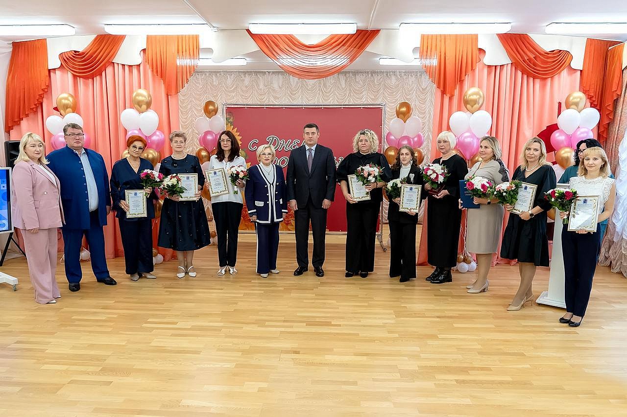 Лучшим работникам сферы дошкольного образования Григорий Артамонов вручает заслуженные награды. Вот за знаком отличия первой степени выходит Татьяна Валентиновна Корнеева, системе образования она посвятила 35 лет своей жизни, 20 из которых работала в детских садах.
