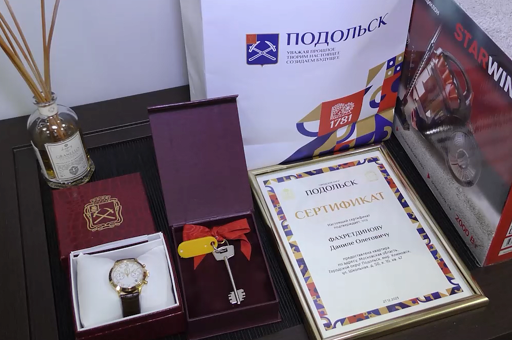 В десять лет молодой человек остался без родителей, воспитывался в приемной семье. Сейчас учится в Дубне на геотехника. В торжественной обстановке зам главы Евгений Градсков вручает Даниле ключи с добрыми пожеланиями от главы города и губернатора региона.