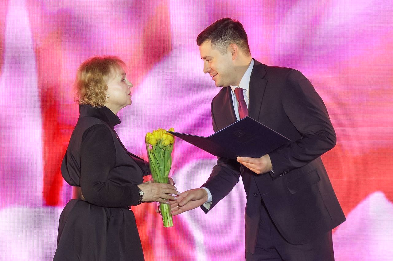 После поздравлений Григорий Артамонов вручает почётные грамоты женщинам, на чьих хрупких плечах держатся целые МКД. Председатели нескольких домов Климовска выходят на сцену и получают заслуженные награды.