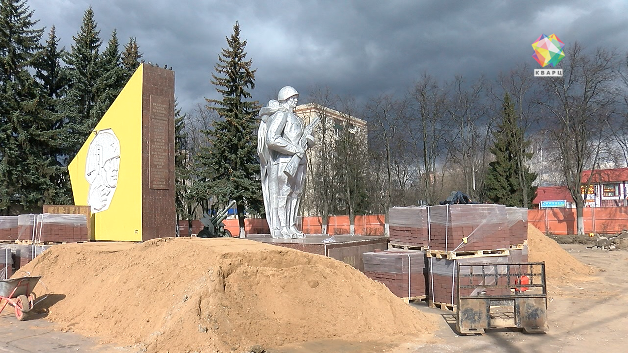 Всего на реконструкцию объекта воинской славы на Октябрьской площади потратят более 21 миллиона рублей. Работы начались и на памятнике «Неизвестному солдату» в Гривно. Вот так он выглядел в 1976 году. И с тех пор тоже капитально не ремонтировался. Здесь стелу с именами погибших солдат покрасят в гранитный цвет, а сам монумент - в серебристый. Появятся и две клумбы и новая подсветка.