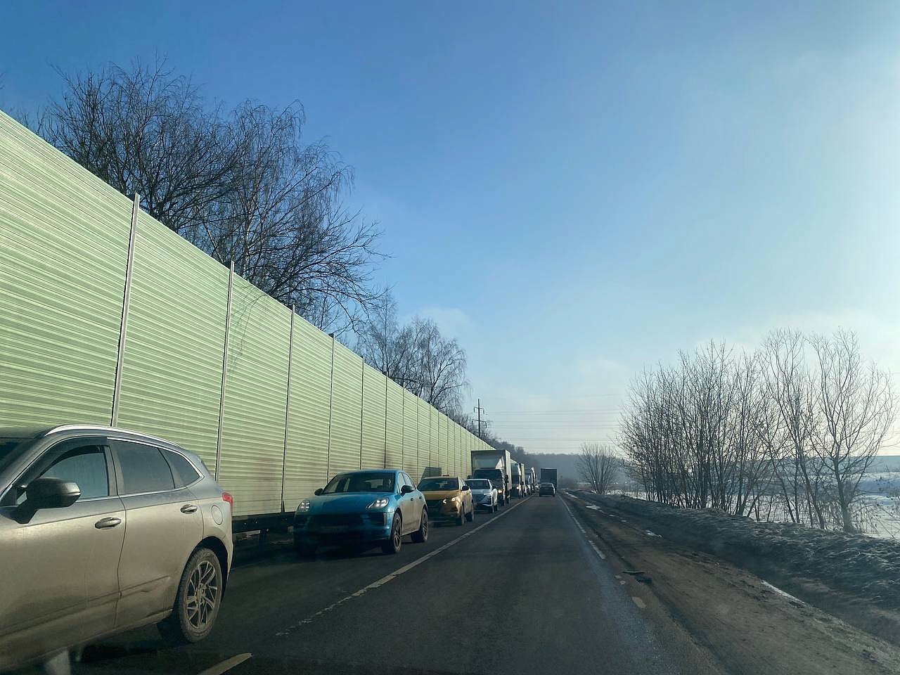По словам жителей деревень Коледино и Новоколедино, мимо постоянно проносятся большегрузы, и шум потока им мешает, сообщает