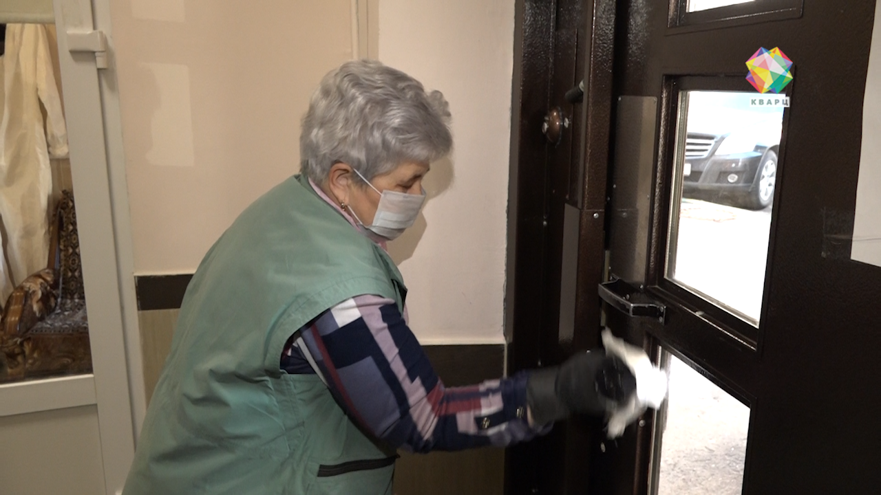 Татьяна Соколова, консьерж дома 12А по улице «Пионерской», свой рабочий день начинает с уборки в подъезде. Надев перчатки и антибактериальную маску, обрабатывает перила и дверные ручки, и так - практически каждый час.