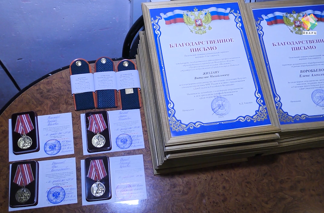 Отметили сотрудников и ведомственными наградами. Начальник службы пожаротушения Главного управления МЧС России Московской области Антон Марчук вручил Медали МЧС «За спасение на пожаре» и специальные звания.