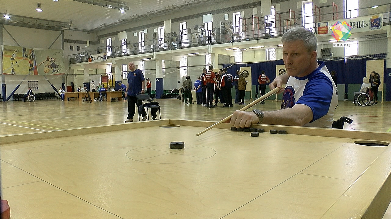 - Это уменьшенный бильярд, морской бильярд. Но здесь не шары, а фишки. И каждый спортсмен должен выбить своей битой фишки противника, забить их в лунки, - знакомит с правилами Сергей Брагин, председатель Подольской городской общественной организации «Спортивный клуб инвалидов «Корсар».