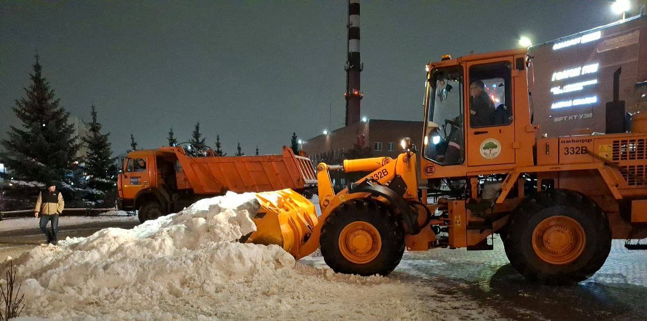 На муниципальных дорогах и общественных территориях работают 279 человек и 42 единицы техники. Они убирают снег на дорогах, тротуарах, пешеходных зонах.
