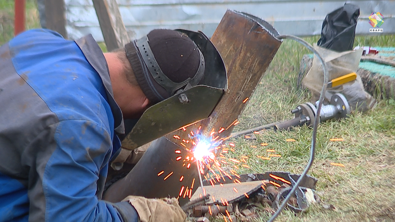 Замена старых труб здесь не обошлась без сварки. Развязка магистрального трубопровода весьма большая, к ней подключено порядка 20 домов. Чтобы уже сегодня вечером согреть жителей - работают в две смены.